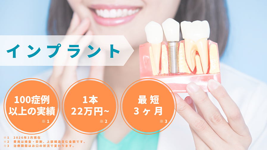 入れ歯による見た目の気になりや食事中の違和感、痛み、口臭などの悩みが挙げられています。入れ歯が合いにくく、毎日の食事や会話に不便さを感じている方にとって、インプラントは別の選択肢となる場合があります。